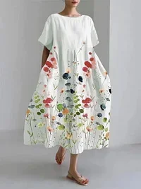 • Allsidige korte ermer: De korte ermene gjør kjolen lett å style og komfortabel i ulike værforhold.